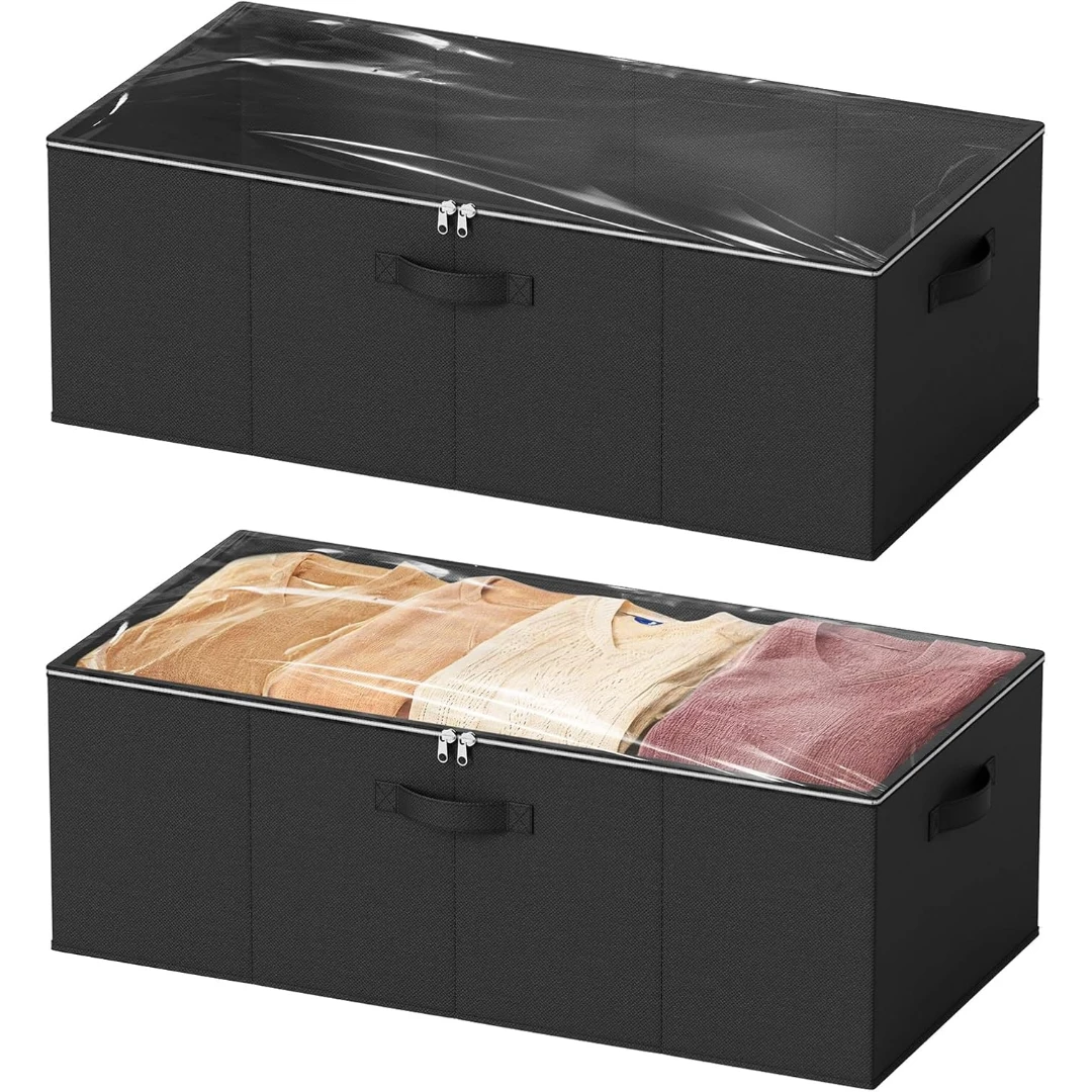 Built with durable fabric, these organizers are strong enough to securely hold seasonal sheets, winter clothes, shoes, pillows, and blankets.