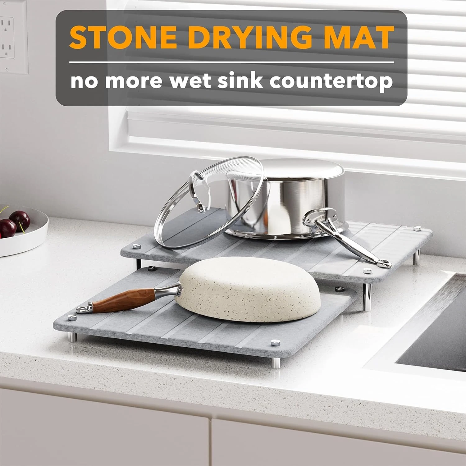 Super Absorbent & Quick Drying: Made with diatomaceous stone, these mats instantly soak up water and dry within minutes, keeping your counter spotless and dry.