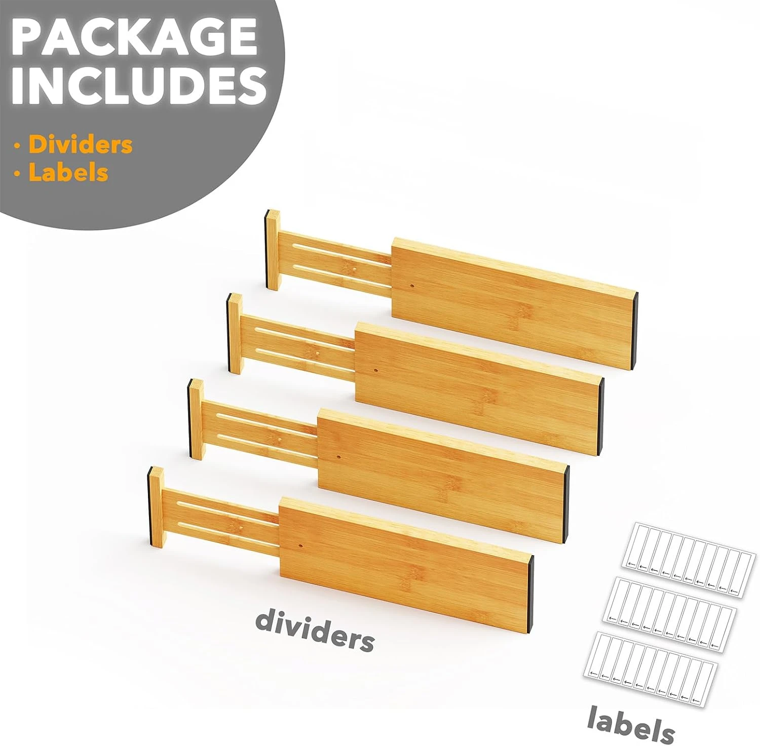 Made from high-quality natural bamboo, these dividers complement the interior finish of most drawers while offering durability and eco-friendly appeal.