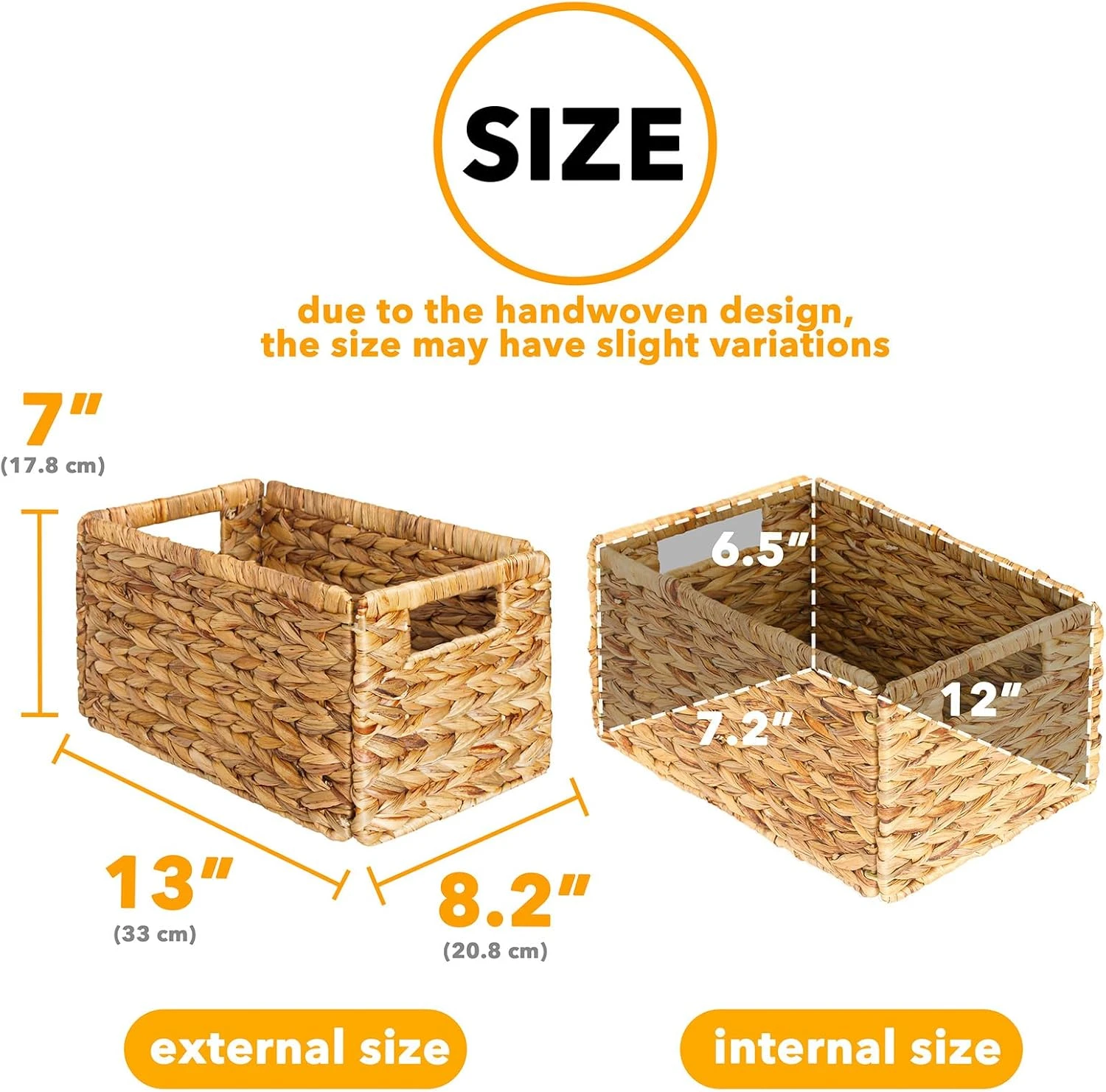 Enhance your home with these beautifully handwoven baskets that offer both charm and practicality. Sized at 13″W x 8.2″D x 7″H, they are ideal for organizing everyday essentials. (Please note: Due to their handcrafted nature, size may vary by up to 1/4 inch.)