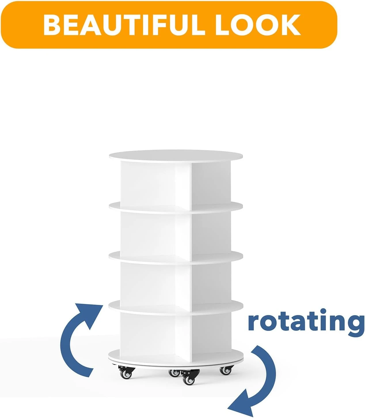 Crafted from durable solid board, this rotating shoe rack is strong enough to hold shoes, handbags, hats, and other bedroom accessories without sacrificing stability.