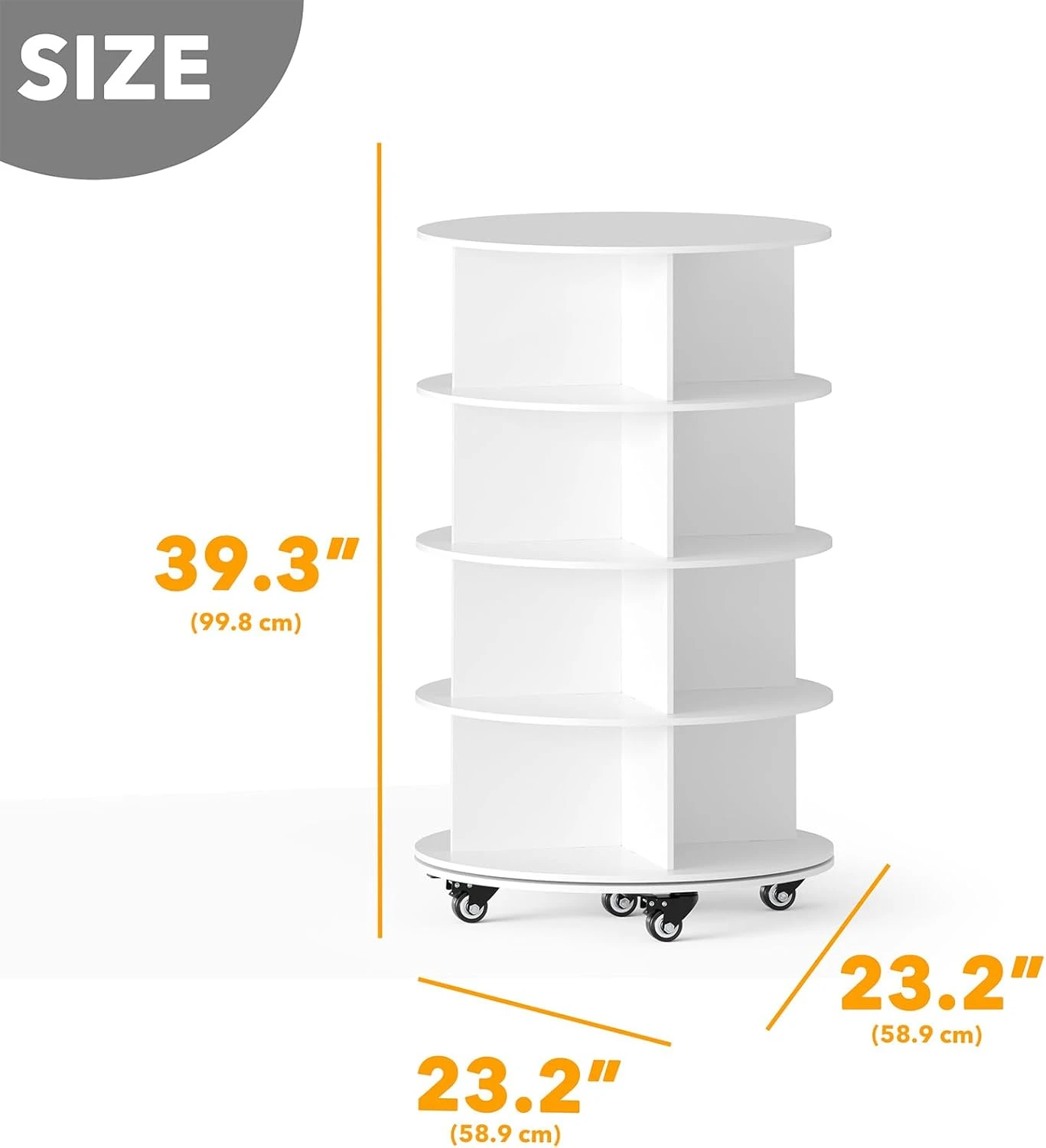This rotating shoe rack features wheels for effortless mobility and a space-saving round design to store shoes or bags in the corner of your room. Size: 23.2″W x 23.2″D x 39.3″H.