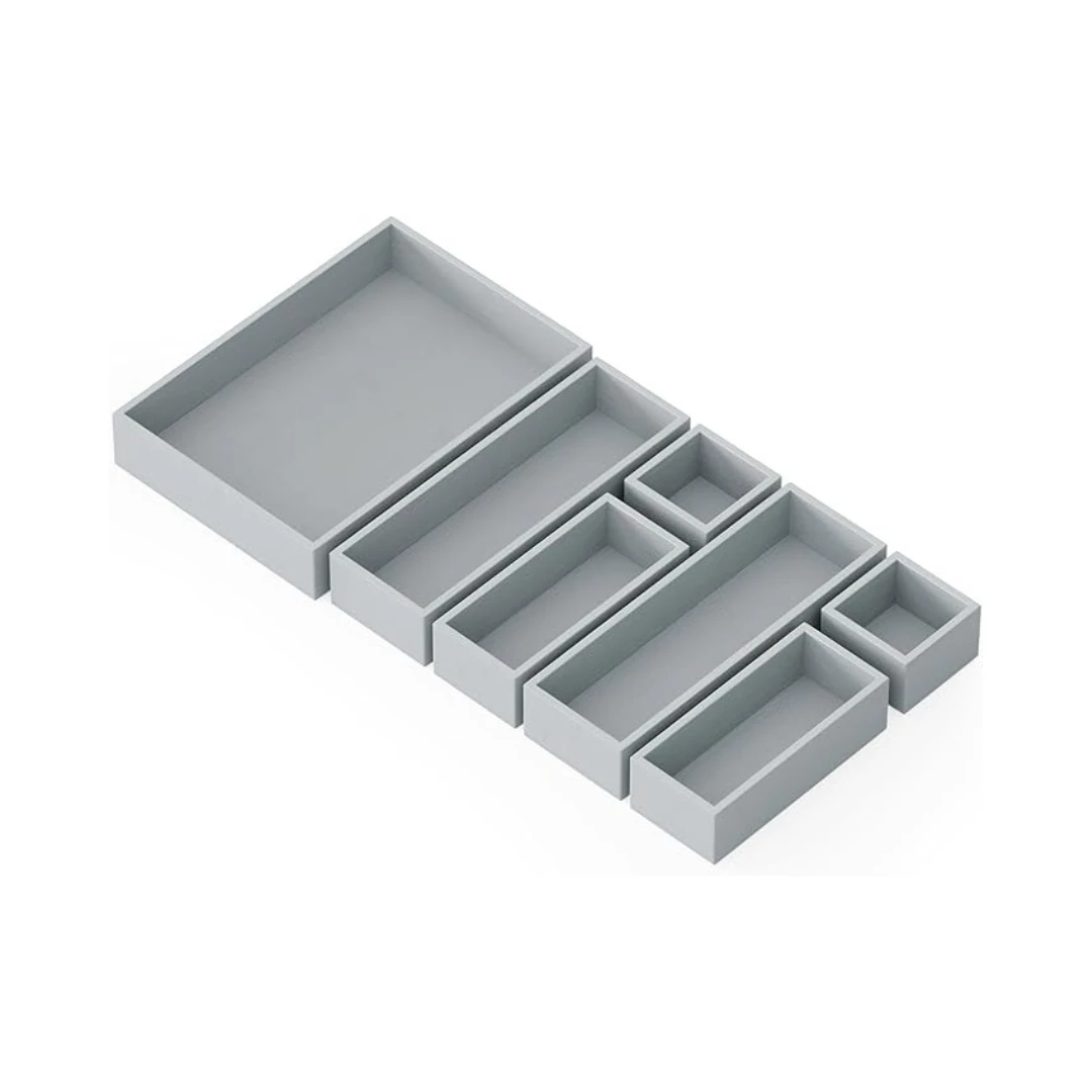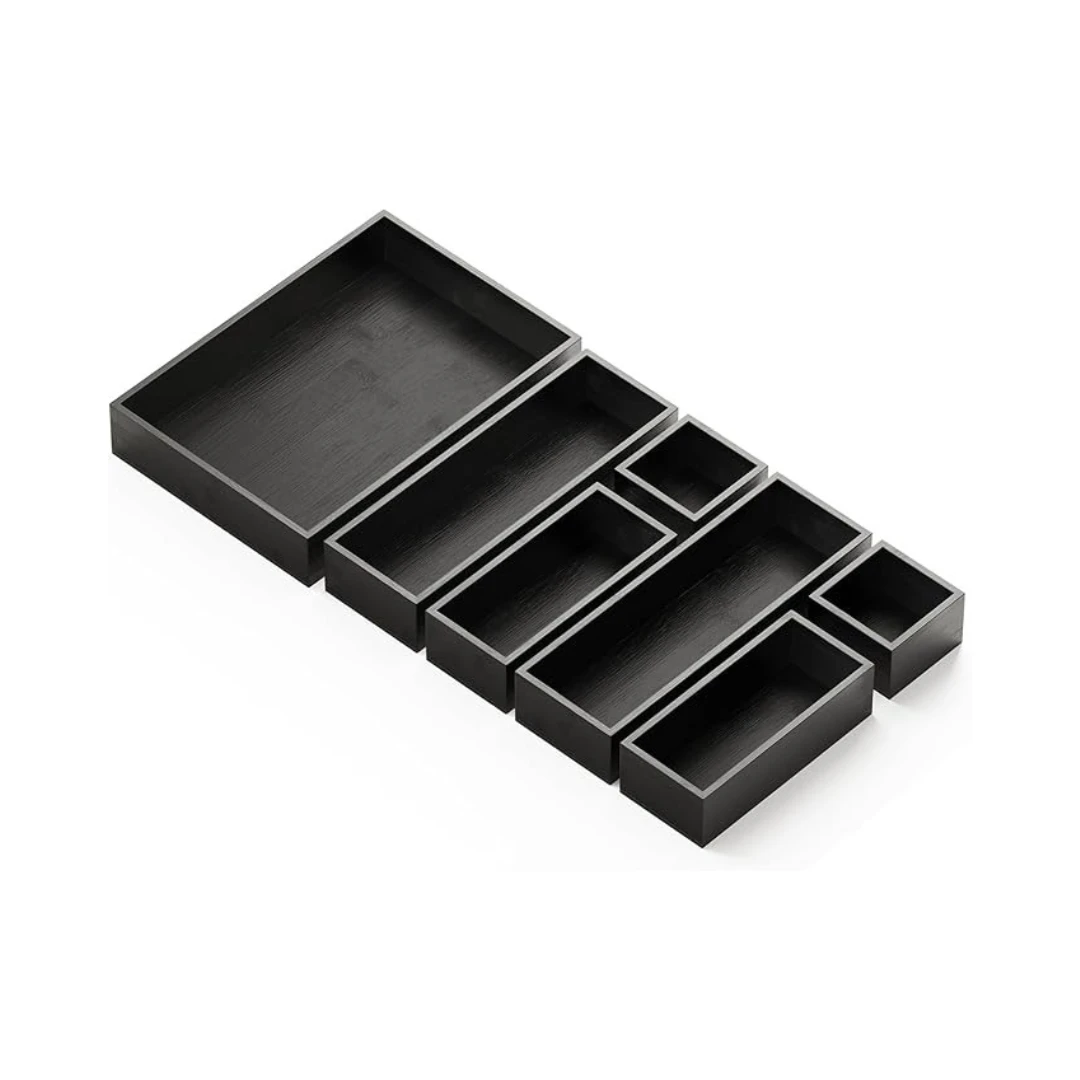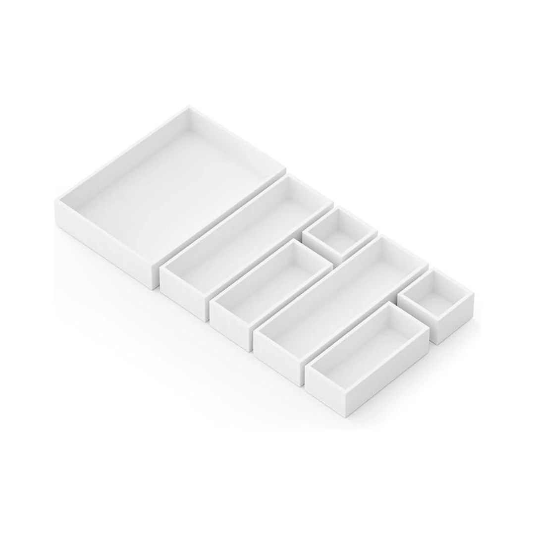 Keep your drawers neat and organized with this 7-piece bamboo drawer organizer set. Each box comes in various sizes: Mini (3″W x 3″D x 1.9″H), Small (3″W x 6.8″D x 1.9″H), Medium (3.5″W x 10.5″D x 1.9″H), and Large (7.7″W x 11″D x 1.9″H) to fit a variety of drawer spaces.