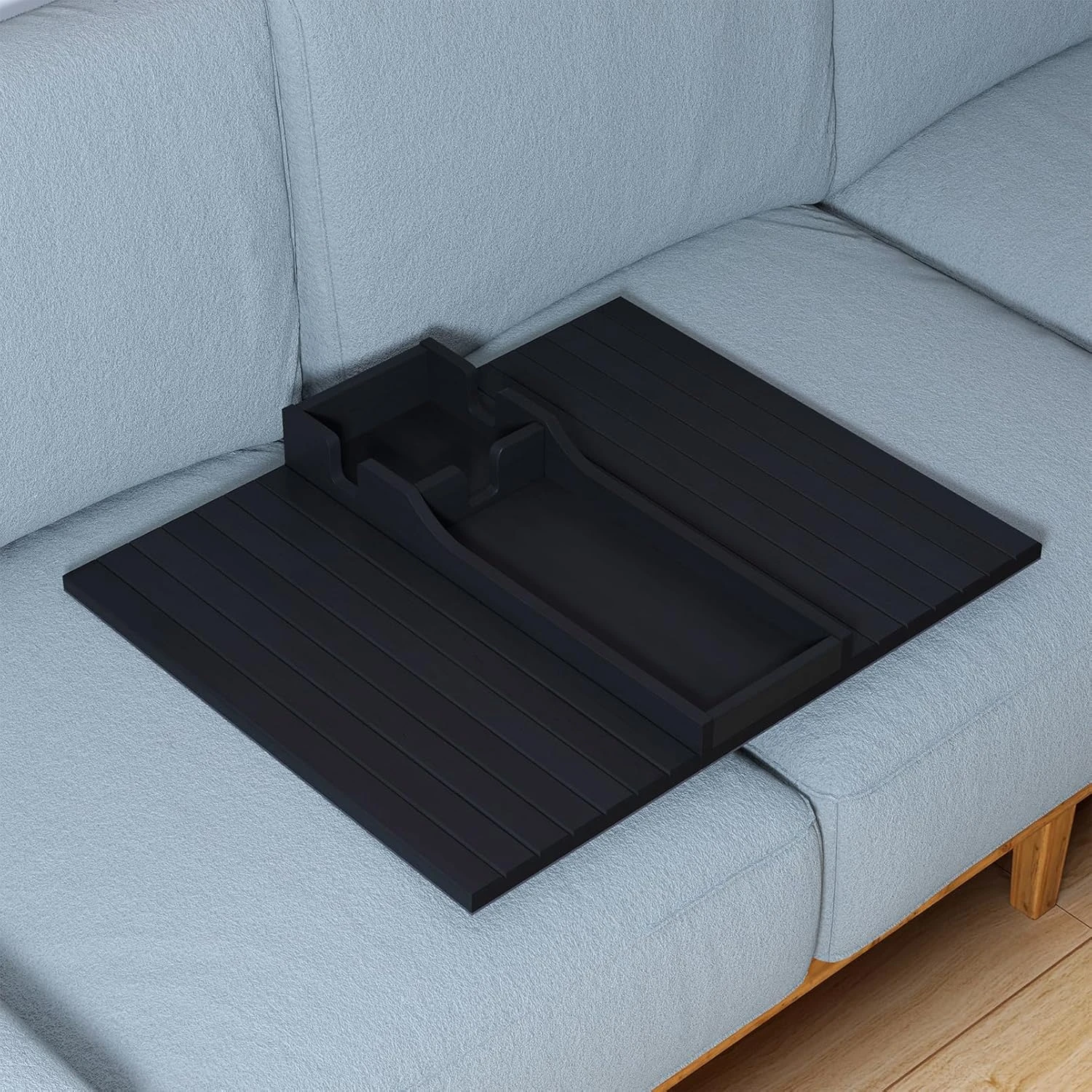 STURDY AND RELIABLE – Made from high-quality bamboo, this couch tray is sturdy enough to hold your drink, snacks, or remote. It’s perfect for everyday use and provides long-lasting durability.