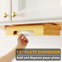 SpaceAid 10-inch Bamboo Vertical Paper Plate Organizer For Kitchen Cabinet