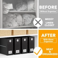 SpaceAid 2 Pack Bed Sheet Storage Container For Linen Closet, Black