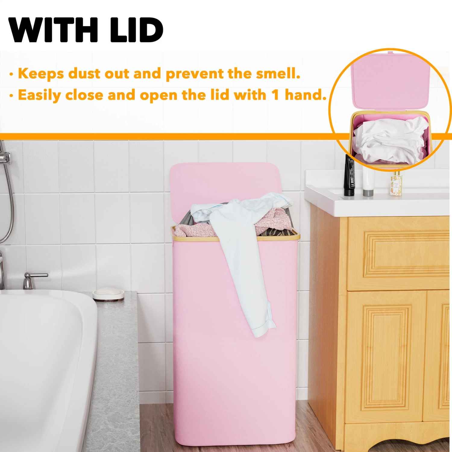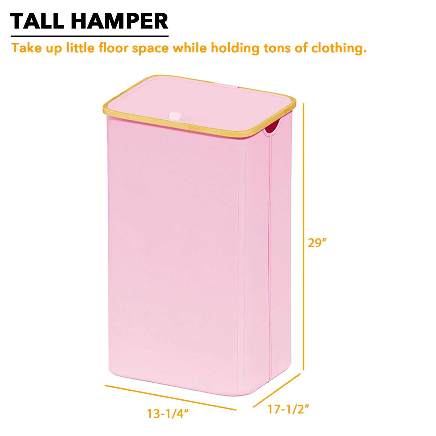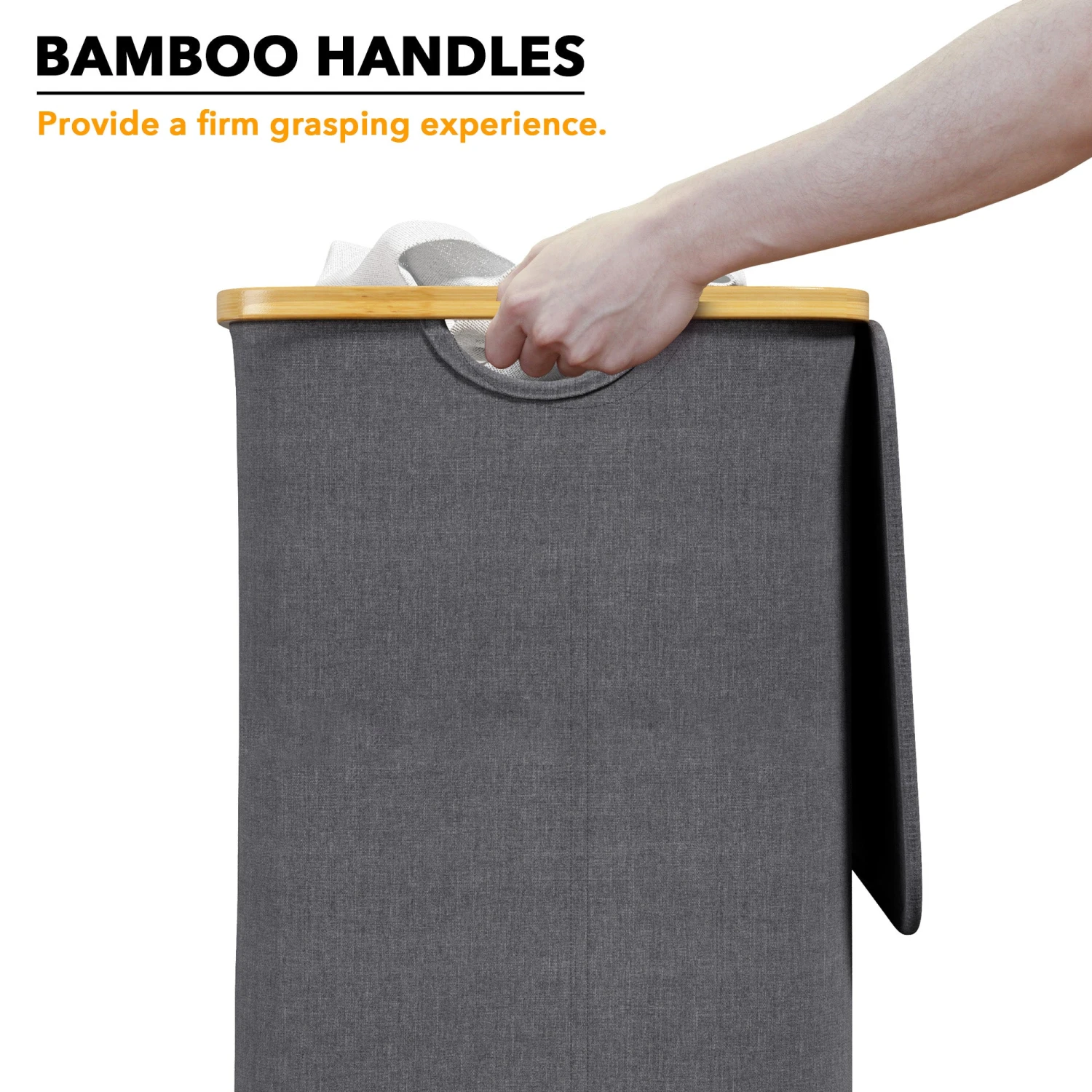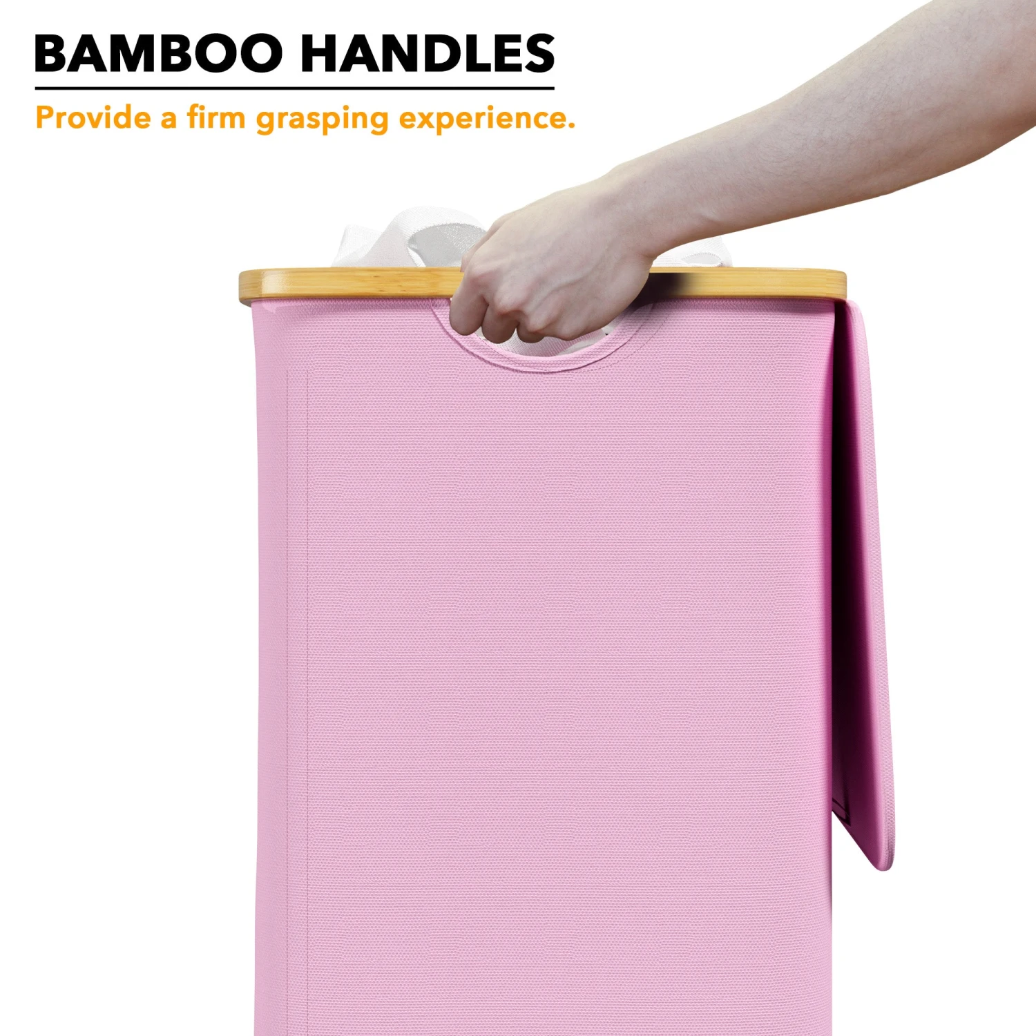 Made from natural bamboo material and thick cationic cloth, the laundry hamper is both durable and smooth to handle. Its bamboo handle is designed for easy carrying, even for pregnant women, seniors, and kids, making it convenient to move up and down stairs.