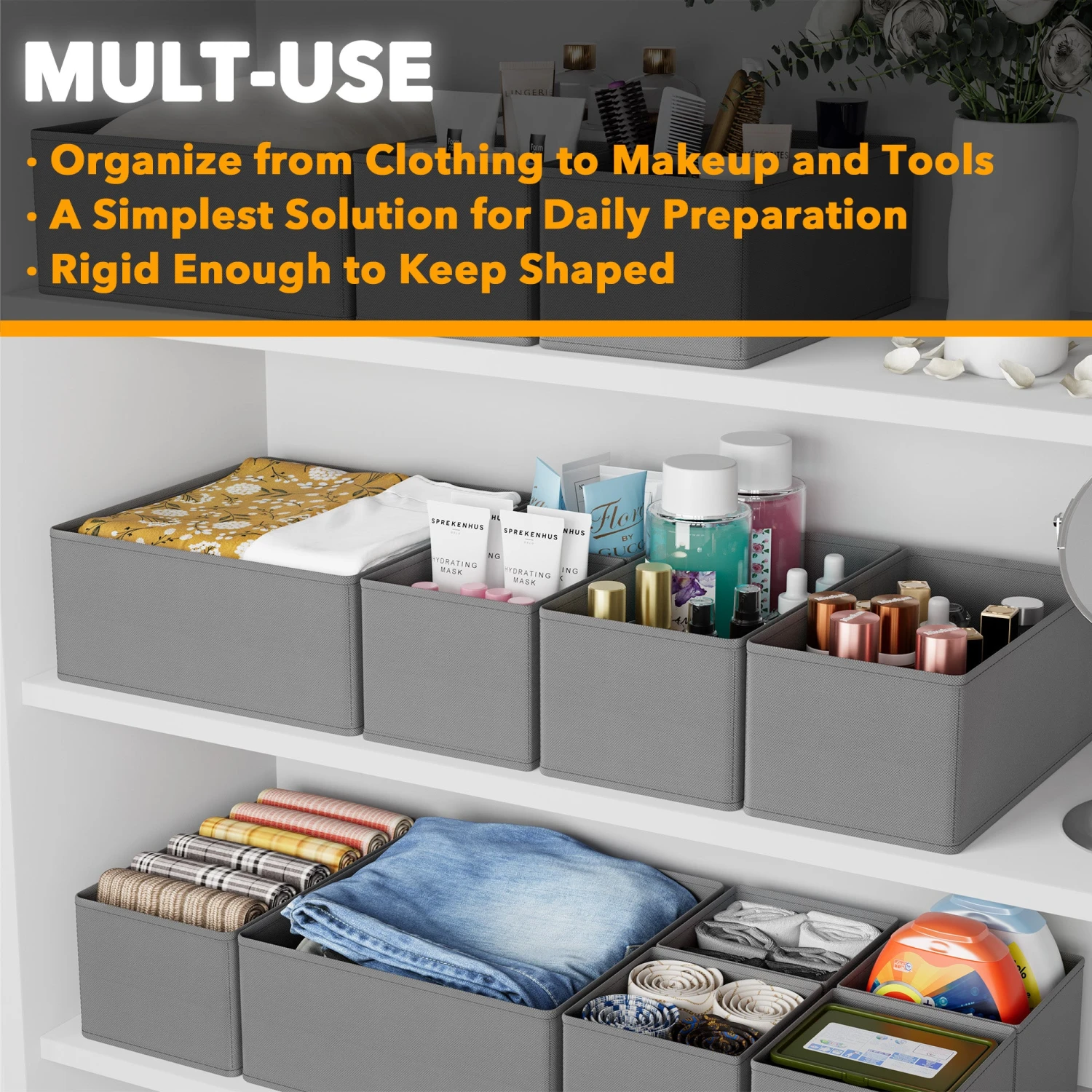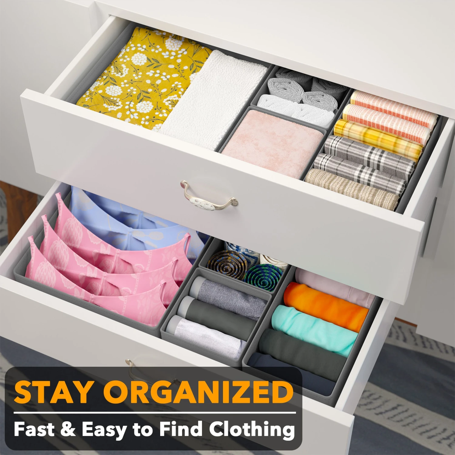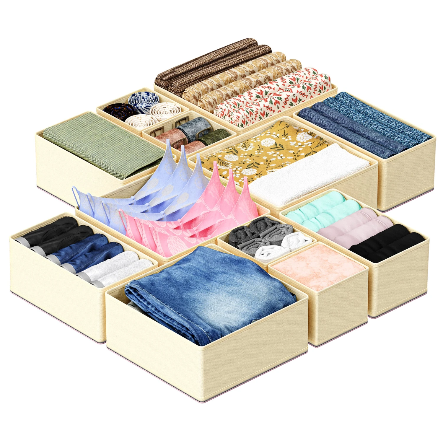 These drawer organizers are ready for use with a simple unzip and setup—no tools required. Ideal for placing on tabletops, inside dresser drawers, or in linen closets. When not in use, just unzip and fold them flat for easy storage.