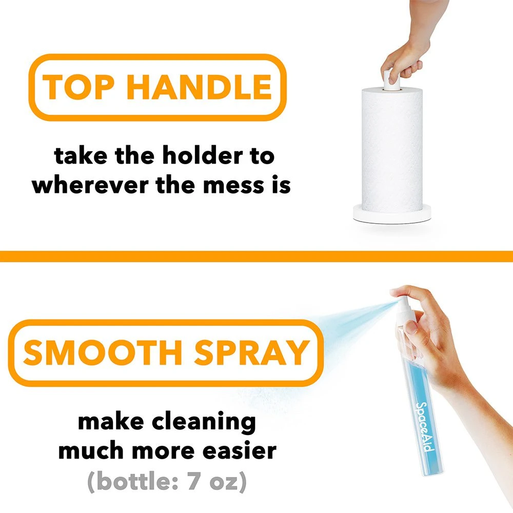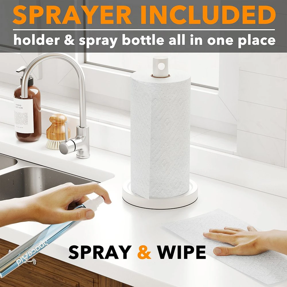 - Easy Assembly and Use: The paper towel holder with spray bottle is user-friendly and straightforward to assemble. Simply grab the top of the holder and clean up messes wherever they may be.