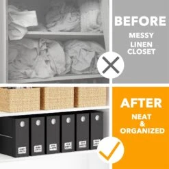 - BLACK SHEET ORGANIZERS 2 PACK: These foldable fabric sheet organizers are designed to make your linen closet organized and visually appealing. Each organizer has the dimensions of 5″W x 15″D x 12.8″H.