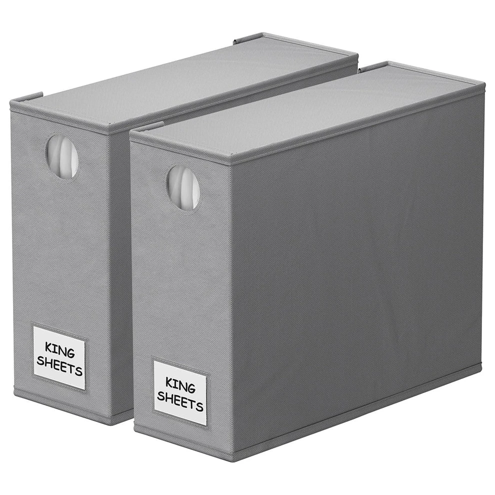 - STURDY CONSTRUCTION – Made of durable fabric, the sheet organizing cubes and handles are built to last. They are sturdy enough to hold 1 Queen or King sheet set, 1 duvet cover, and 2 pillowcases.