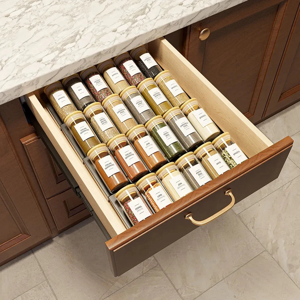 - Organized and stylish: With matching style spice labels, this spice jar set helps keep your kitchen organized and visually appealing. You can quickly identify different seasonings, and the minimalist farmhouse style labels add a touch of elegance to your spice collection.