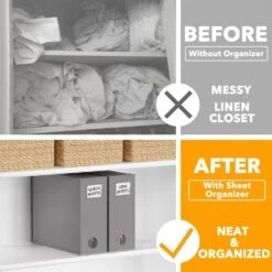 SpaceAid 2 Pack Foldable Sheet Organizer For Linen Closet, Gray