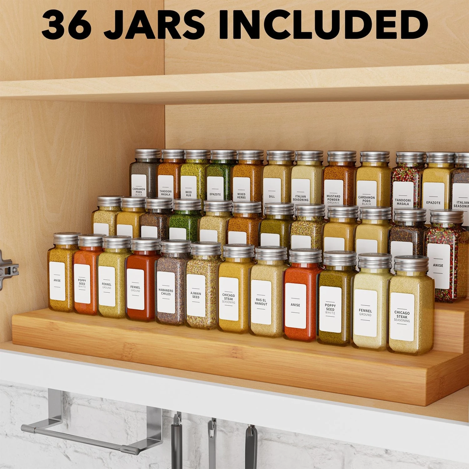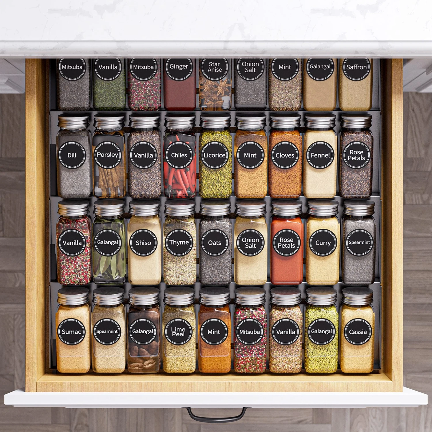 SpaceAid Spice Organizer For Drawer With 36 Spice Jars, 386 Spice Labels And Chalk Marker, 4 Tier