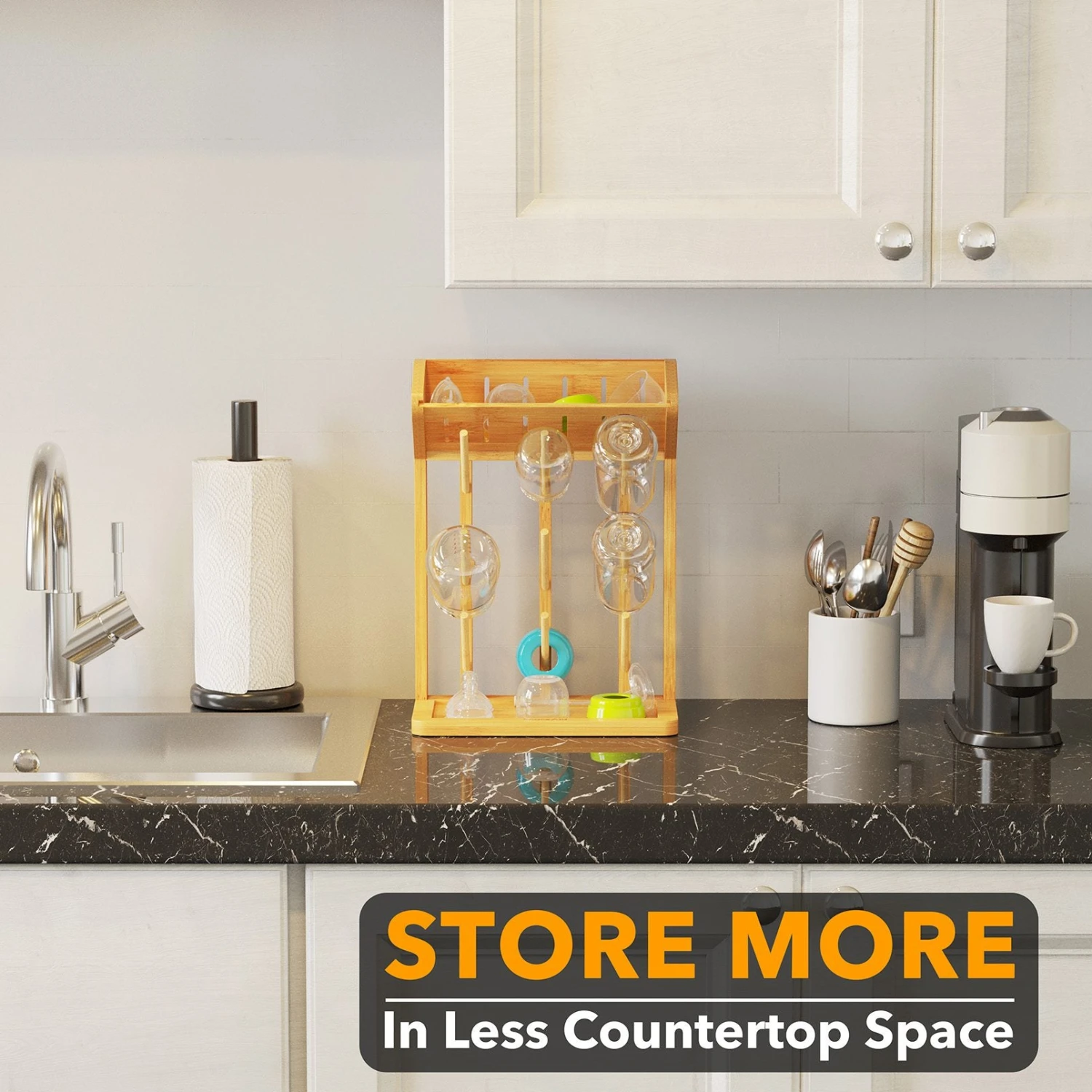 - VERSATILE STORAGE: Our bottle organizer is specifically designed to accommodate various baby bottle sizes and assist in kitchen storage organization.