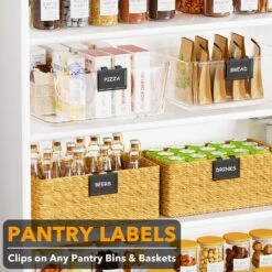 SpaceAid 10 Pack Black Pantry Basket Label Clips On For Storage Bins With 20 Label Cards