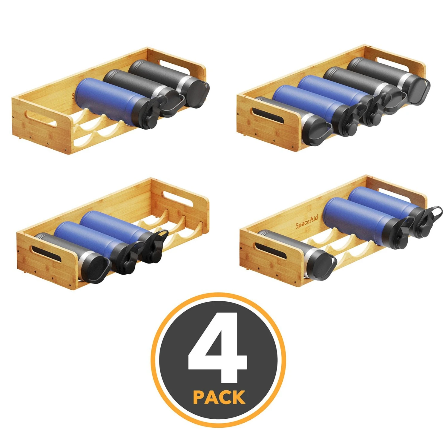 Bamboo SpaceAid Water Bottle Organizer, 4 Pack 3-Slot, Hold 12 Bottles
