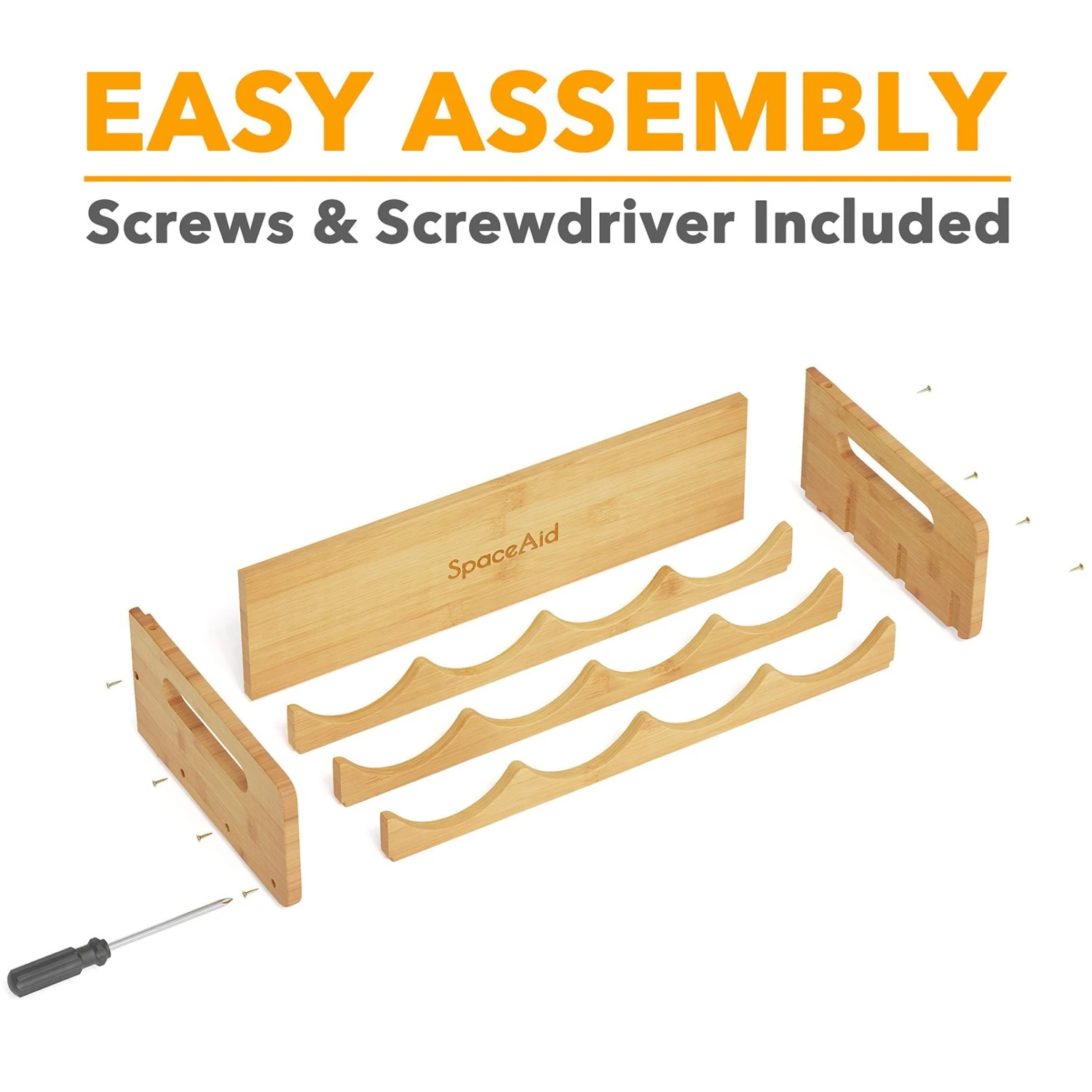 - Keep your kitchen cabinet organized and aesthetically pleasing with the bamboo water bottle organizer rack. Designed specifically for organizing various types of bottles, each bin in this set