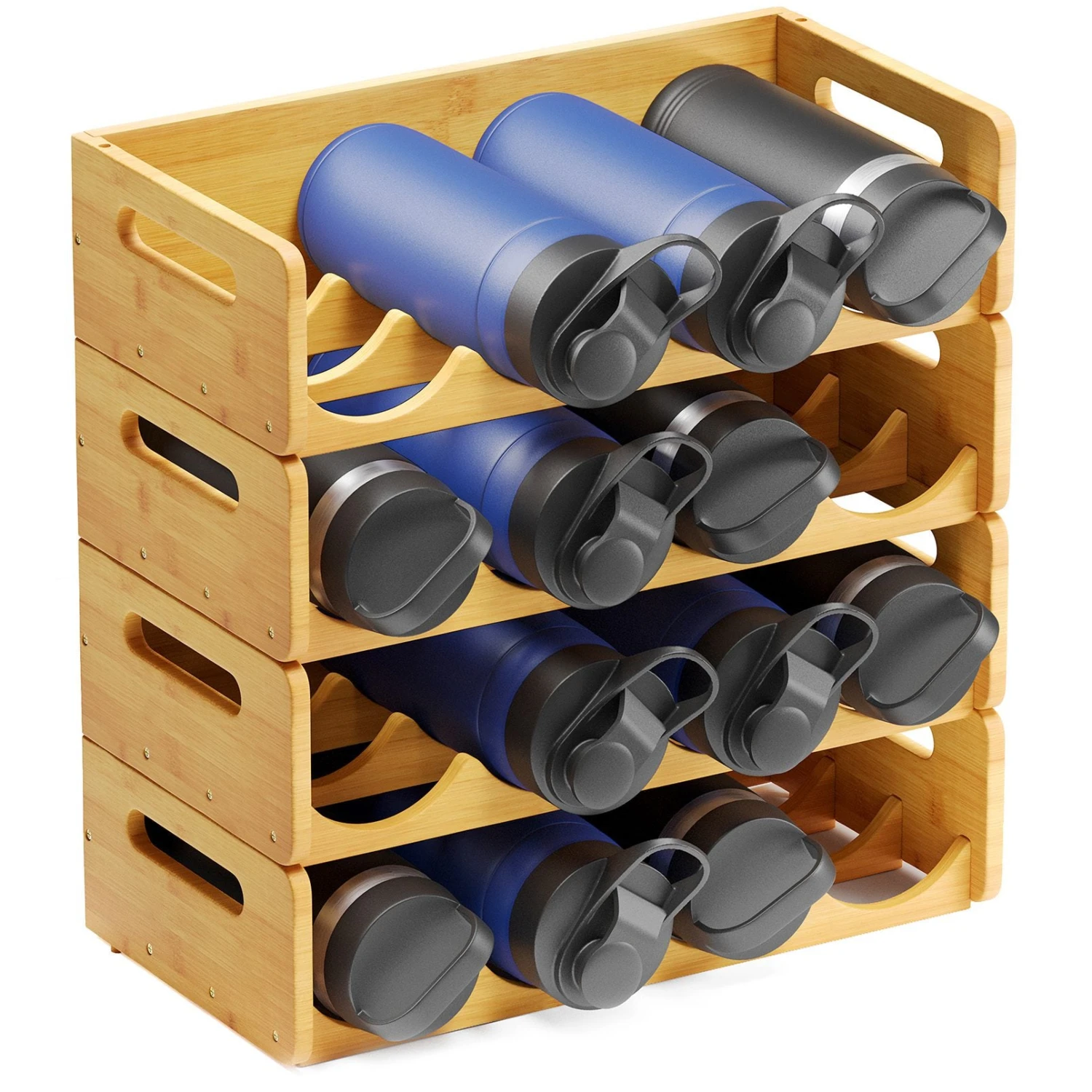 - Efficient Bottle Storage: With this bamboo organizer holder, you can keep your home clean and easily keep track of your water bottles. Instead of struggling to fit bottles into cramped cabinet spaces, this organizer provides dedicated bins that accommodate bottles of various sizes, ensuring a clutter-free and efficient storage solution.
