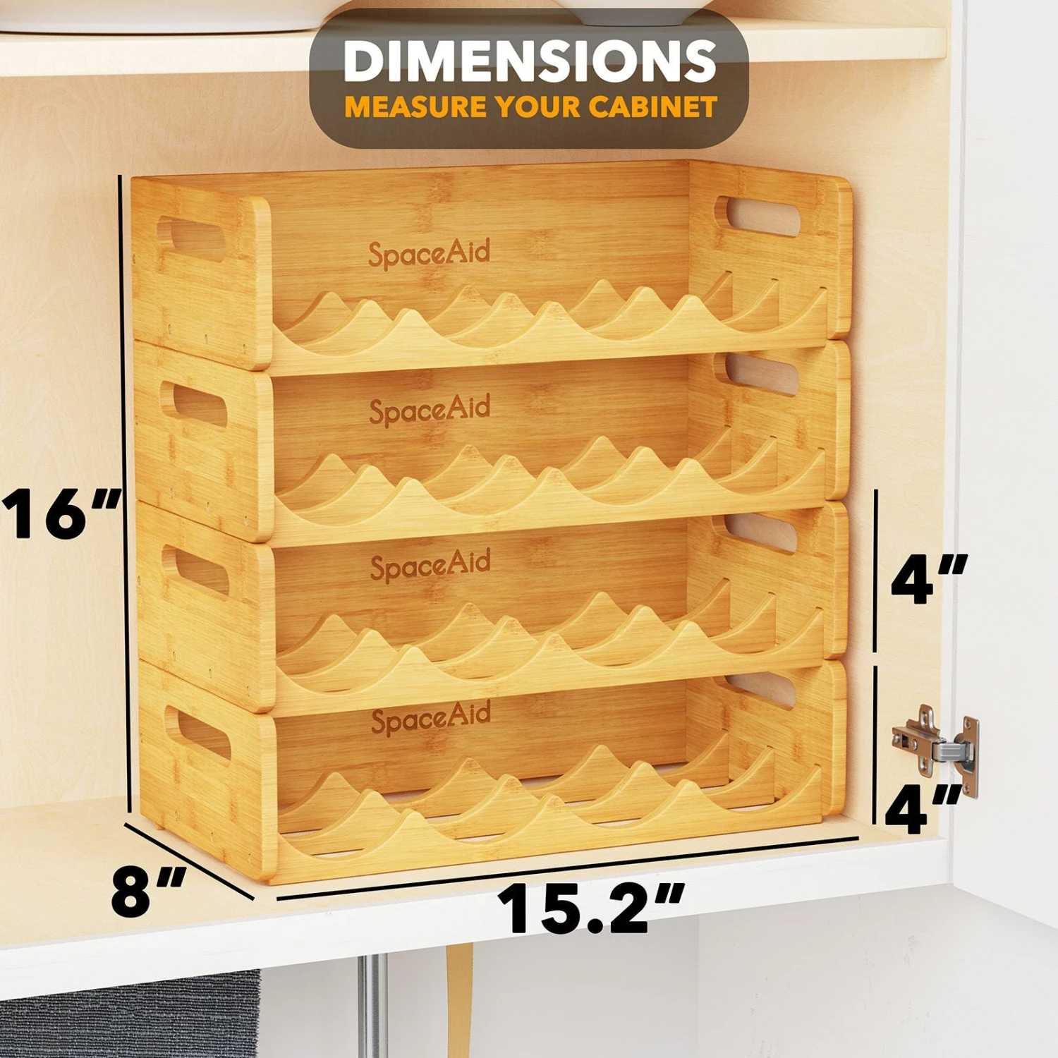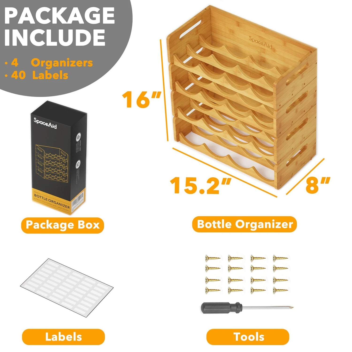 - Organizer Dimensions: Each bin of the bamboo water bottle storage rack organizer measures 15.2″W x 8″D x 4″H, providing ample space for organizing your bottles. The set is designed to hold up to 16 bottles, allowing you to store and display your collection neatly.