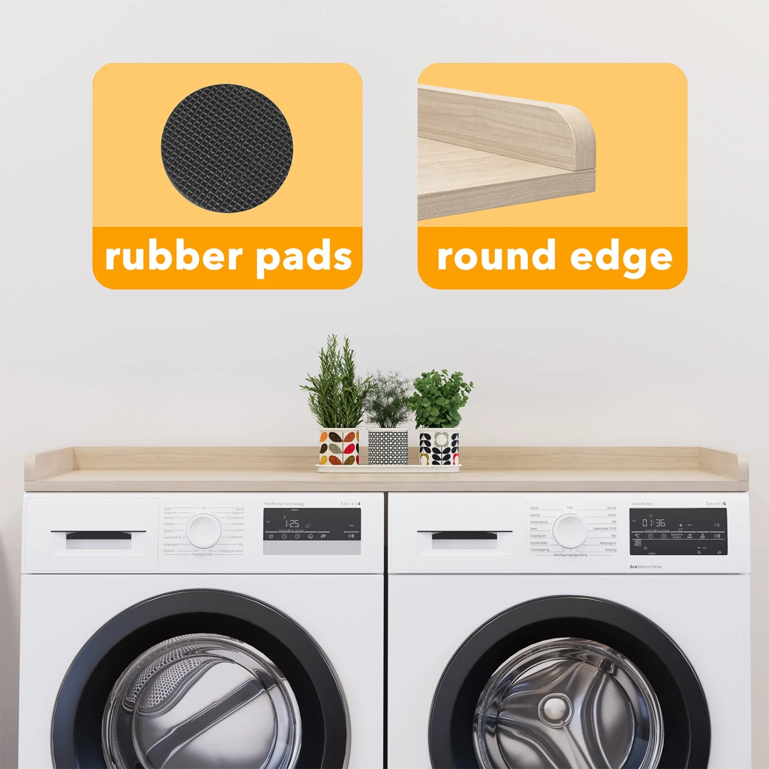 - THOUGHTFUL EDGE DESIGN- The laundry countertop features raised edge designs on the left, right and back sides; To prevent items from falling; This modern deisgn can also fit with any home decor style