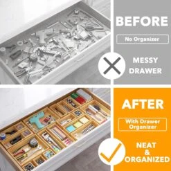 21-Piece Bamboo Drawer Organizer Set – Multi-Use Storage Bins