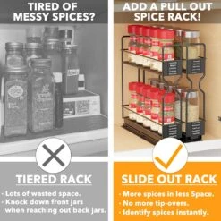 - Can hold 24 spice jars, maximizing kitchen space and keeping it tidy.