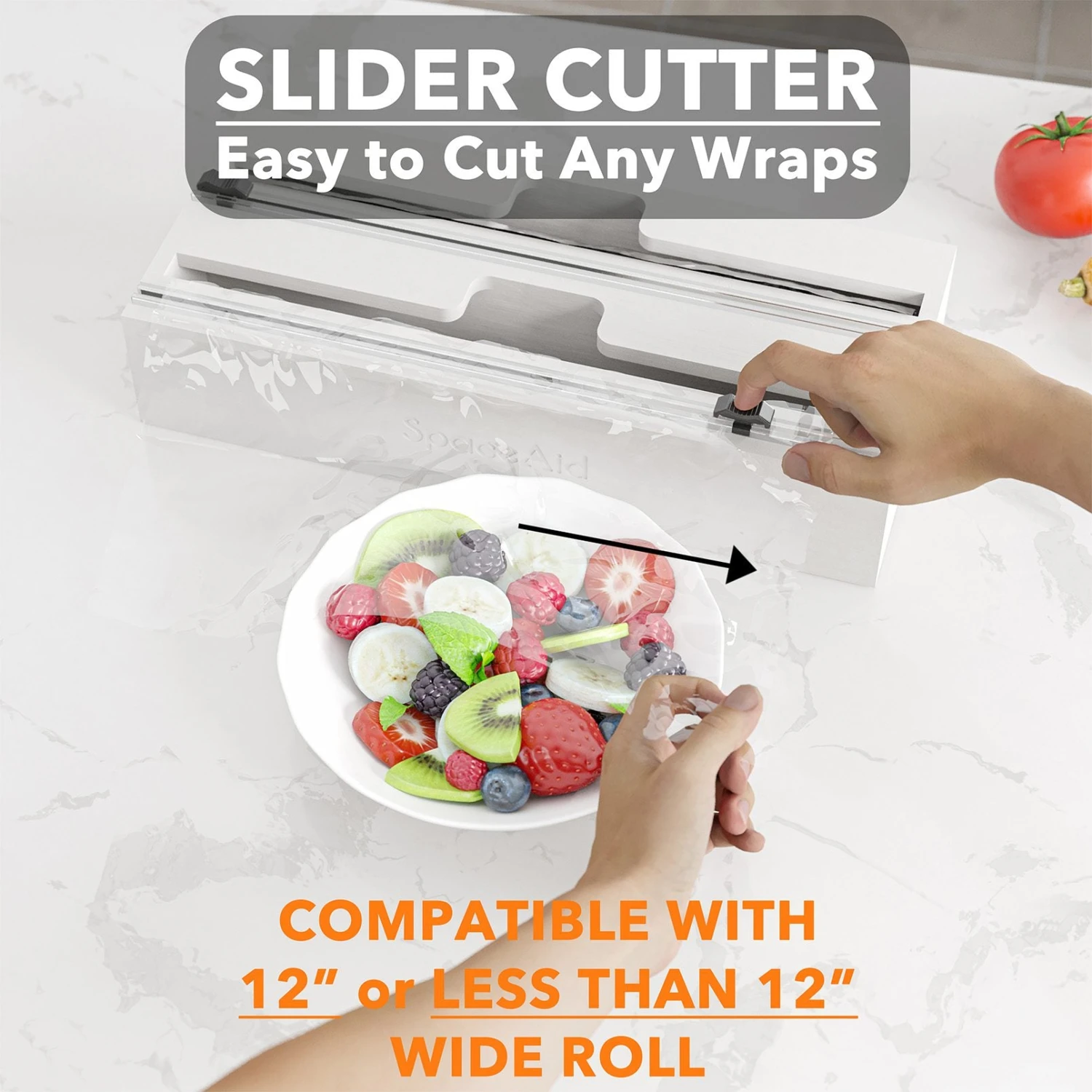 - Each slot features a built-in slide cutter to ensure a clean cut every time. The cutter holds each roll securely in place, preventing it from losing its starting point during dispensing.